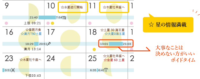 星の動きやボイドタイムの